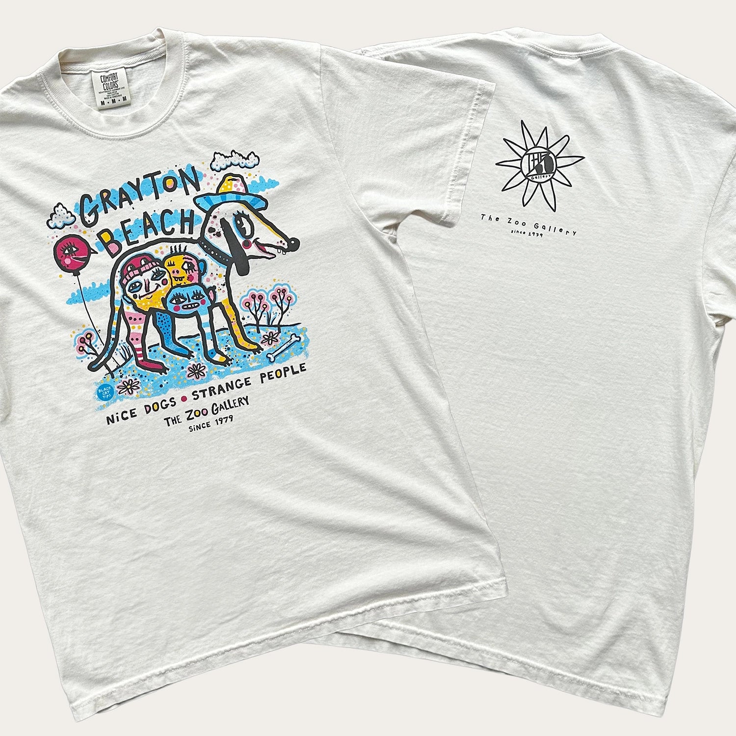 If you were around The Zoo Gallery in the mid-80s, chances are you remember this design—part whimsy, part edge, and all Zoo. Printed once again by Greg of Serigraphia in Ft. Walton Beach, who’s been behind our tees since the very beginning, this reissue is a direct line back to those early days when Zoo Tees became part of the culture on the Gulf Coast.